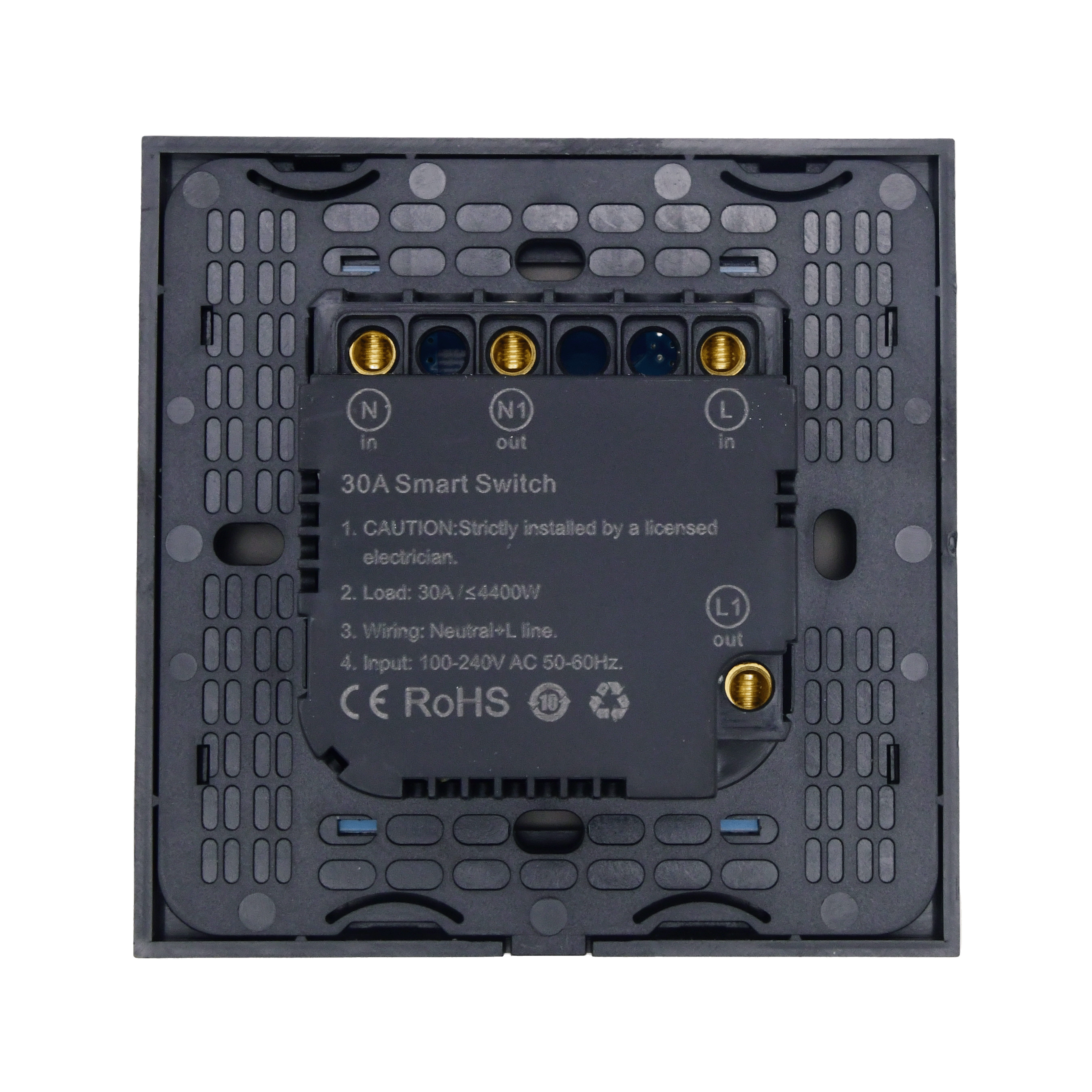 The PIERRE Wave Flat Series 1 Gang High Consumer Switch is engineered to handle significant loads, supporting a maximum current of 30A and a load power of 4400W. Its sleek black design integrates seamlessly into modern decor. Operating on a voltage range of 100-240V AC at 50/60Hz, this switch features a user-friendly interface with a single gang configuration and is constructed from high-quality materials, including tempered glass and a metal frame for durability.