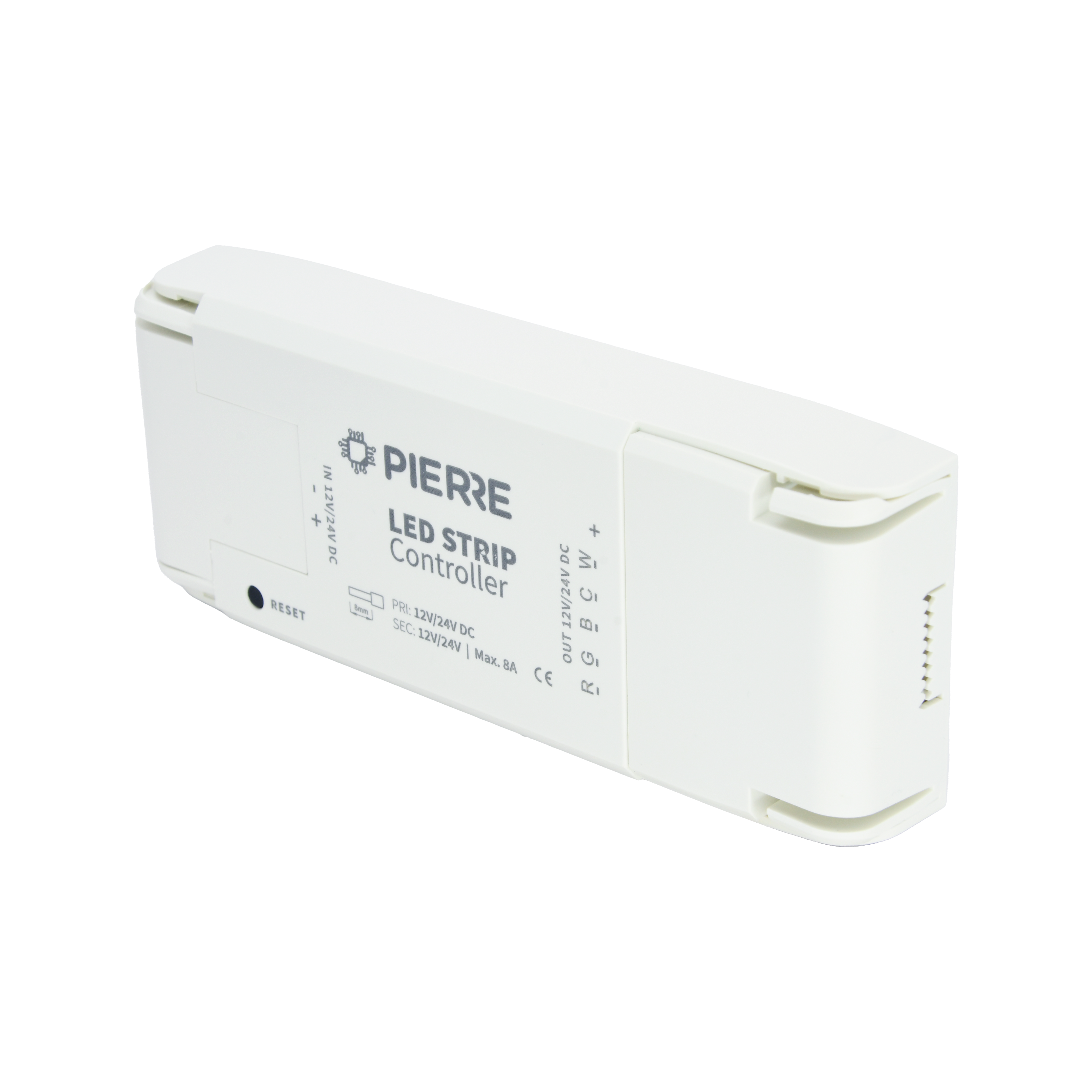 The PIERRE Wave RGBCW LED Strip Module operates on a 12-24V DC power input and is capable of controlling RGB (Red, Green, Blue), CCT (Correlated Color Temperature), and CW (Cool White) LED channels independently. Utilizing PIERRE Wave communication, it integrates smoothly with compatible smart home gateways, allowing users to control and customize their LED strips through the PIERRE Smart home system.