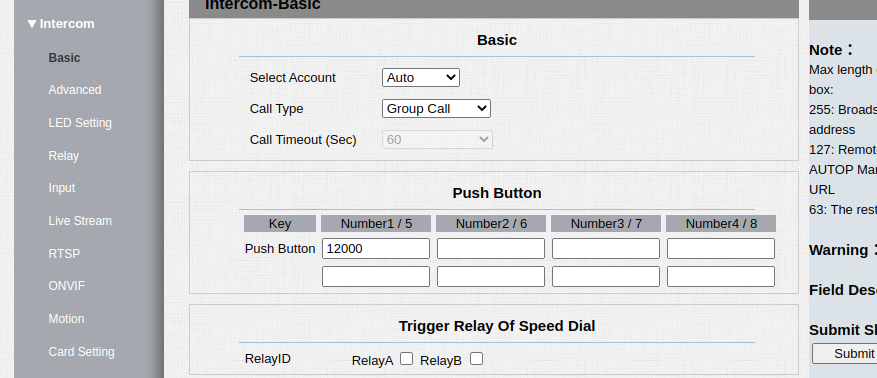 Proceed to Intercom / Basic Settings: